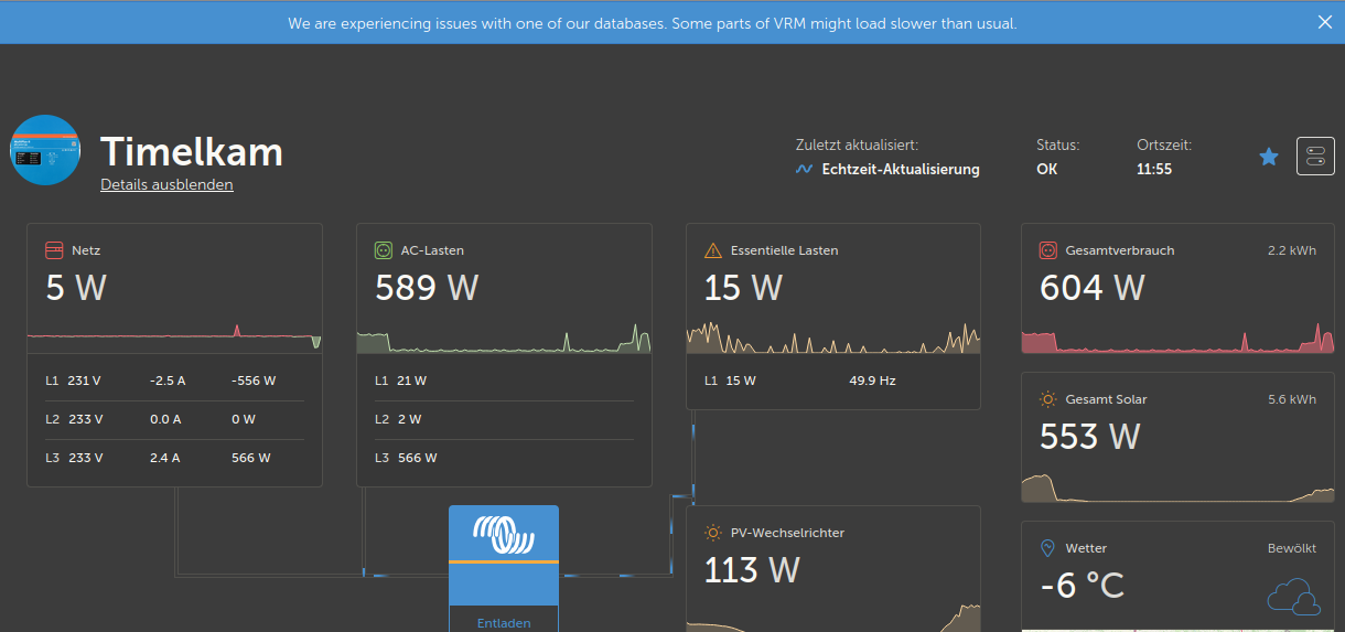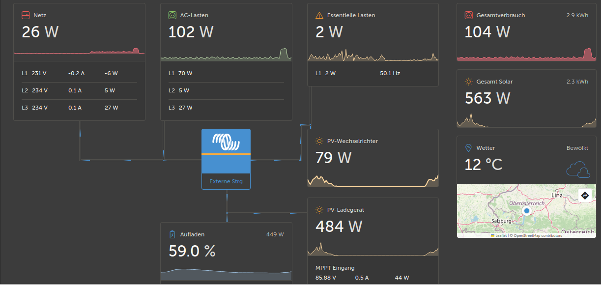 Moin, zeige mal Bitte nochmal das Bild vom VRM Portal wie das dort bei dir aussieht im Dashboard. Als was für ein Gerät ist er dann im VenusOS eingebunden? Die ID kannst im VRM Portal zu allen Geräten einzeln auslesen?
