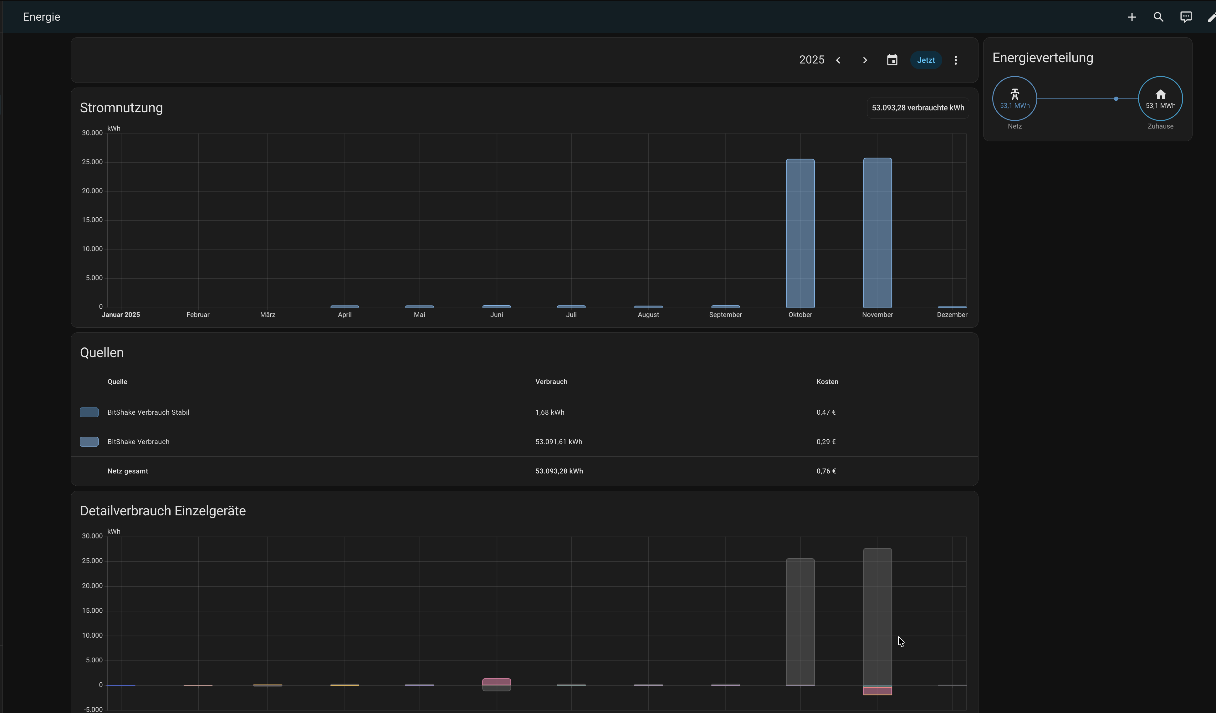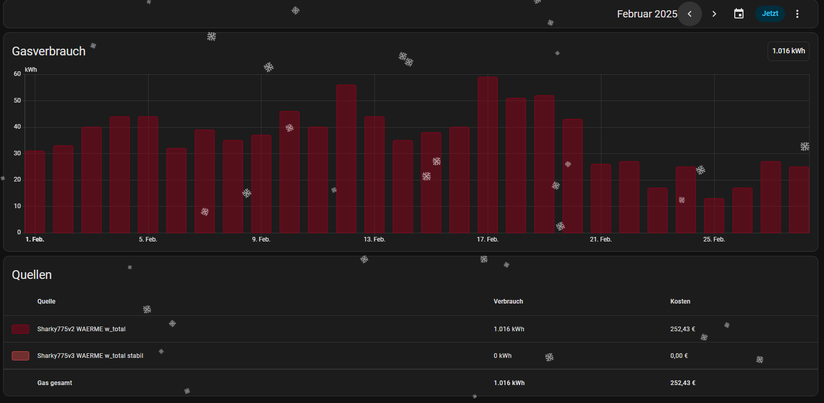 Es ging mir ja darum, das das Energieboard korrekt aussieht und vorallem auch das die Kosten des Verbrauchs richtig angezeigt werden. Das ist nun mit dem dazugekommenen Sensor bisher alles im grünen Bereich ! Ich hoffe es bleibt auch so !