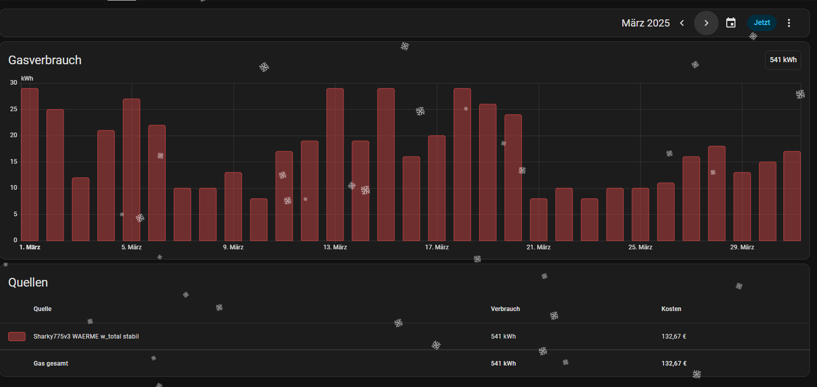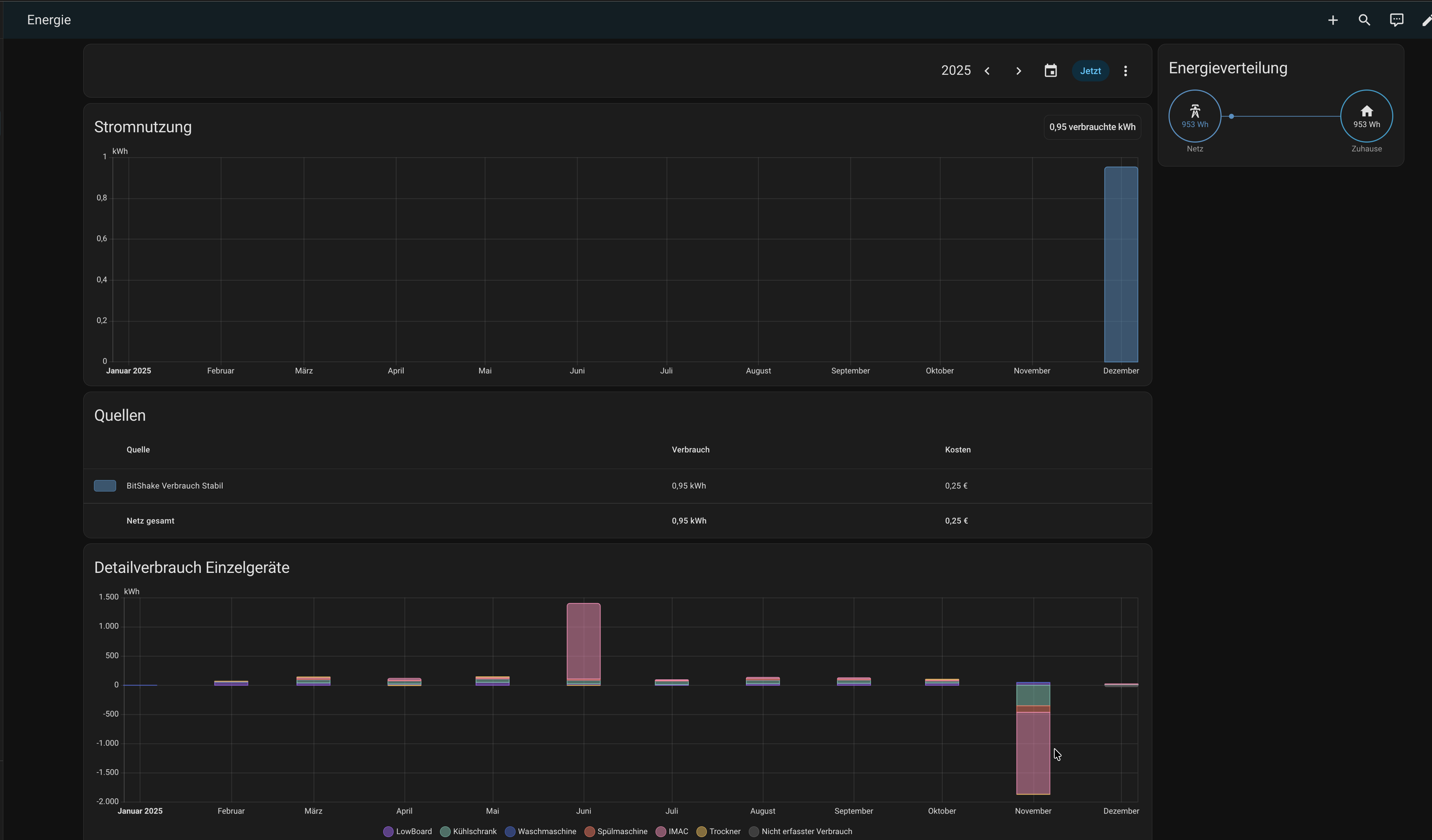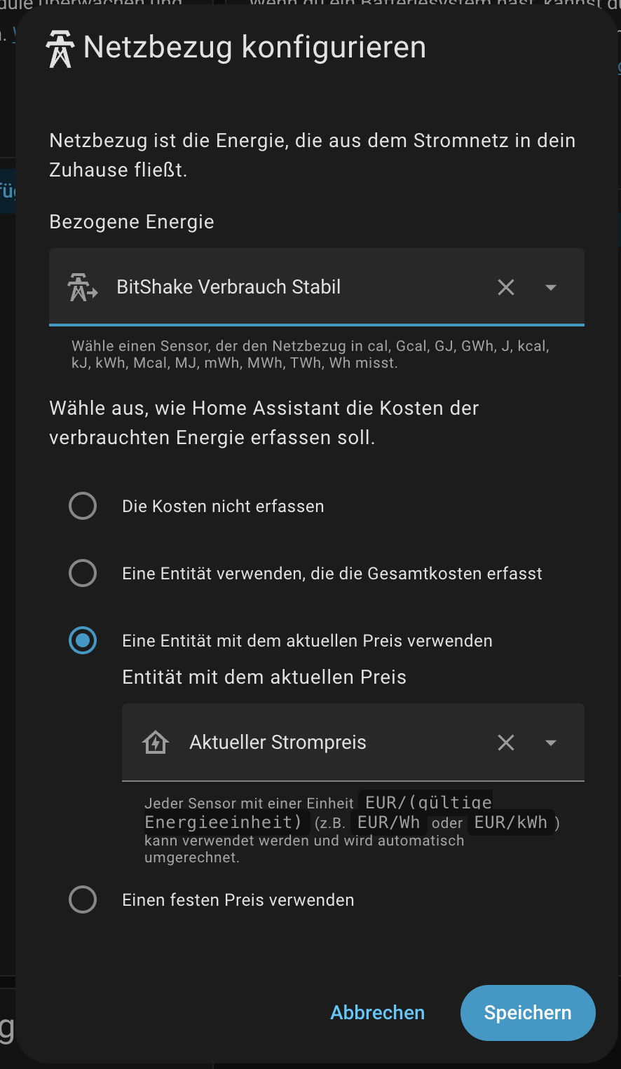 diese ist in meinem Energie Dashboard und das wiederum erzeugt wegen der hinterlegten Kosten eine neue Entität: