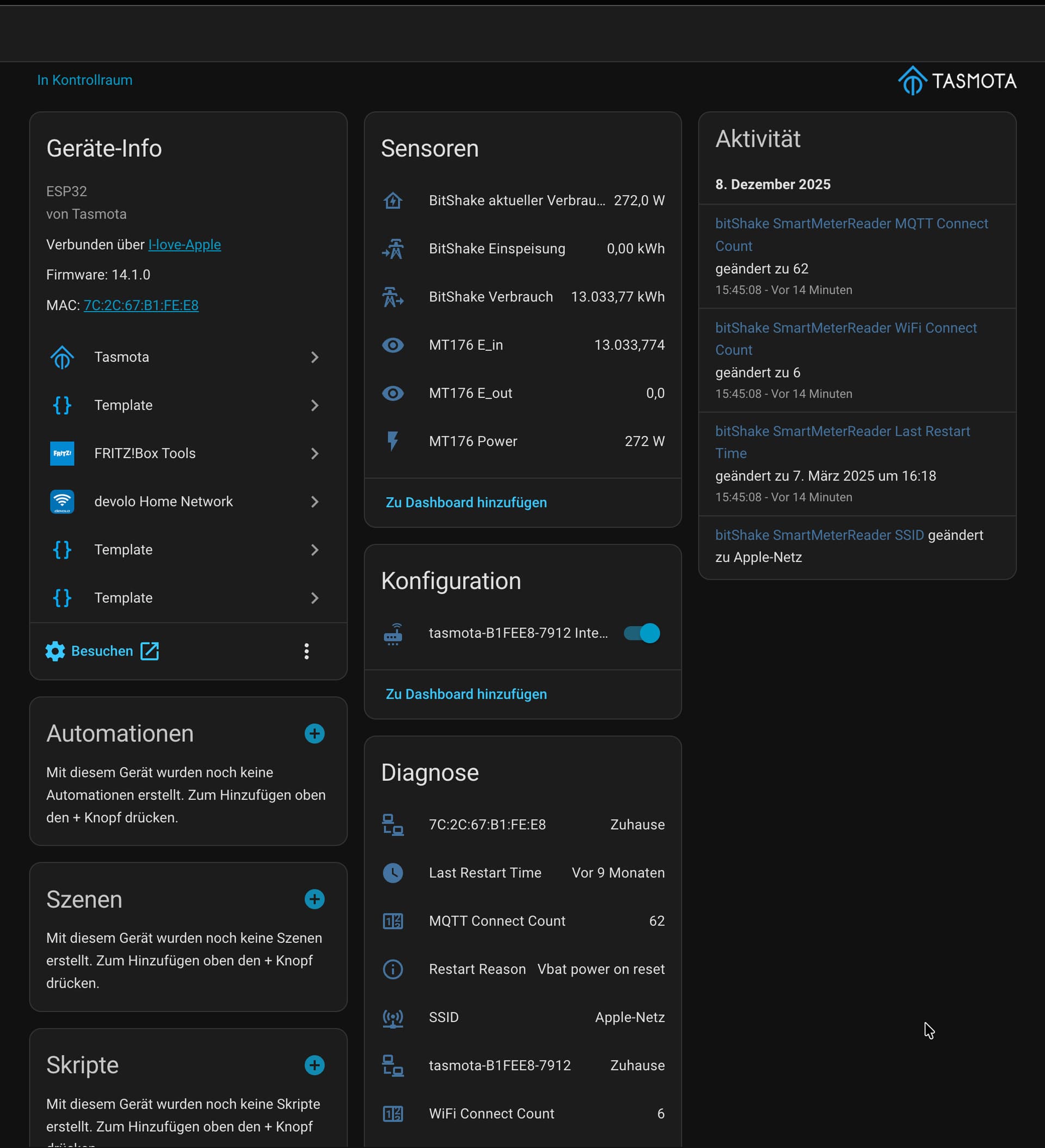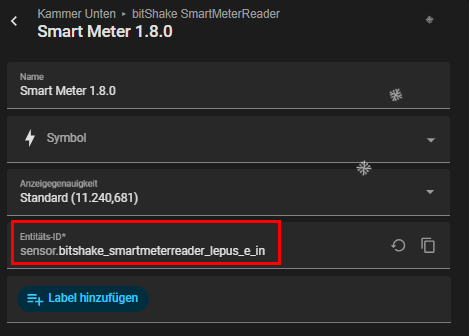 und die Entität heißt „sensor.bitshake_smartmeterreader_lepus_e_in“ => das ist WICHTIG