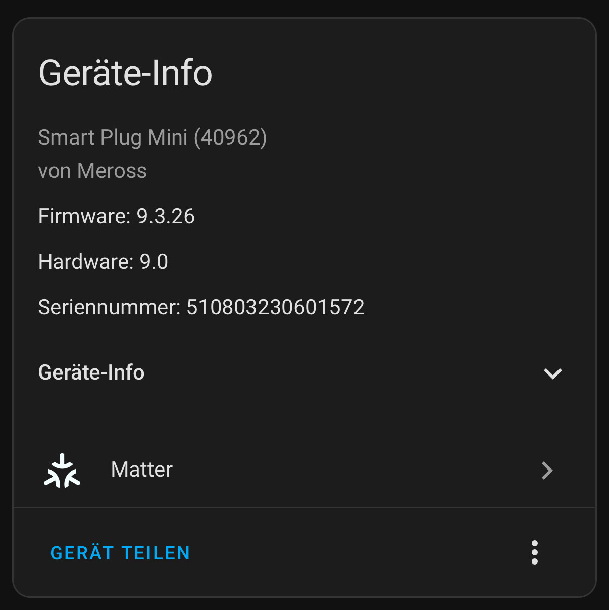 Bei mir funkt ein Meross Matter Smart Plug für den Air Fryer, der Energiedaten überträgt ![]()