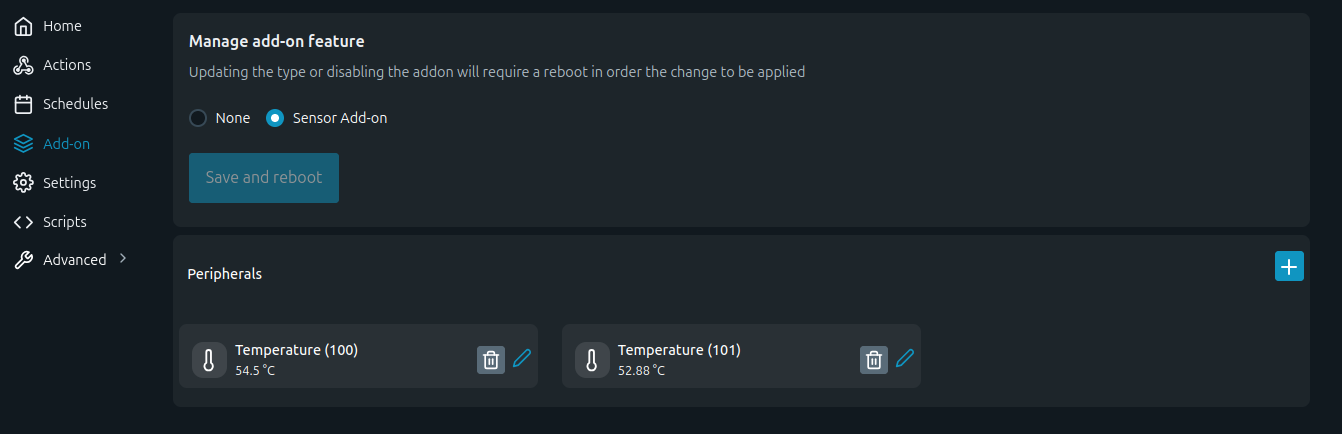 Sollte es dir zu heikel sein 1200W über einen Shelly 1PM direkt zu schalten, dann könntest du auch einen Shelly EM Gen3, in Verbindung mit dem Shelly Addon benutzen. Dann könntest du, neben den Temperatursensoren, noch die Steuerleitung eines Relais deiner Wahl an das Addon bauen. Das man das Addon im Shelly Webinterface aktivieren muss, erwähne ich nur der Vollständigkeit halber.