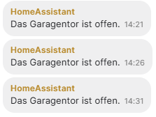 message: Das Garagentor ist offen.